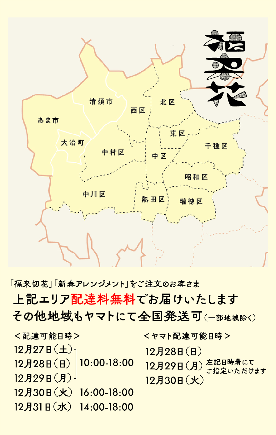 配達エリア:名古屋市内指定区(マップ参照)・大治町・あま市・清須市 全域