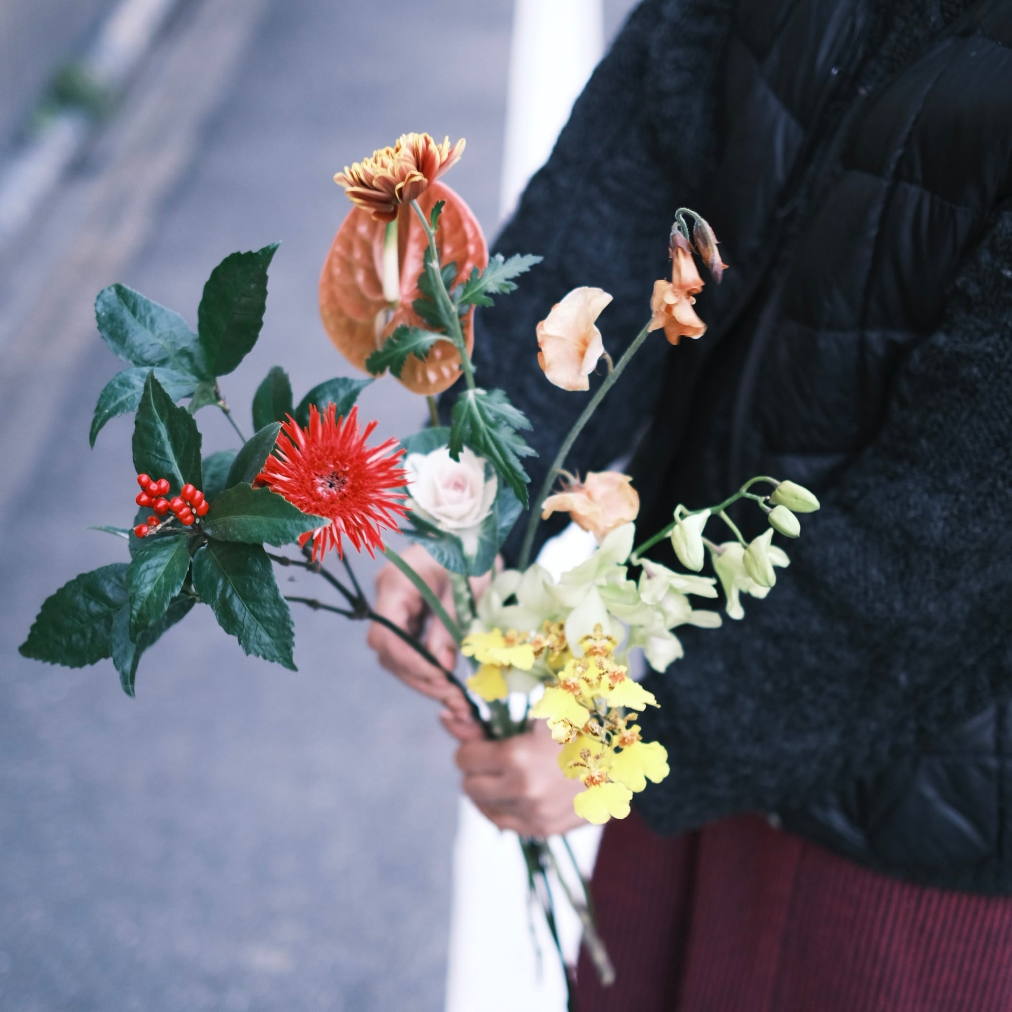 ・みちくさセレクトの縁起の良い花材料をセットにしたお花をお届けします。