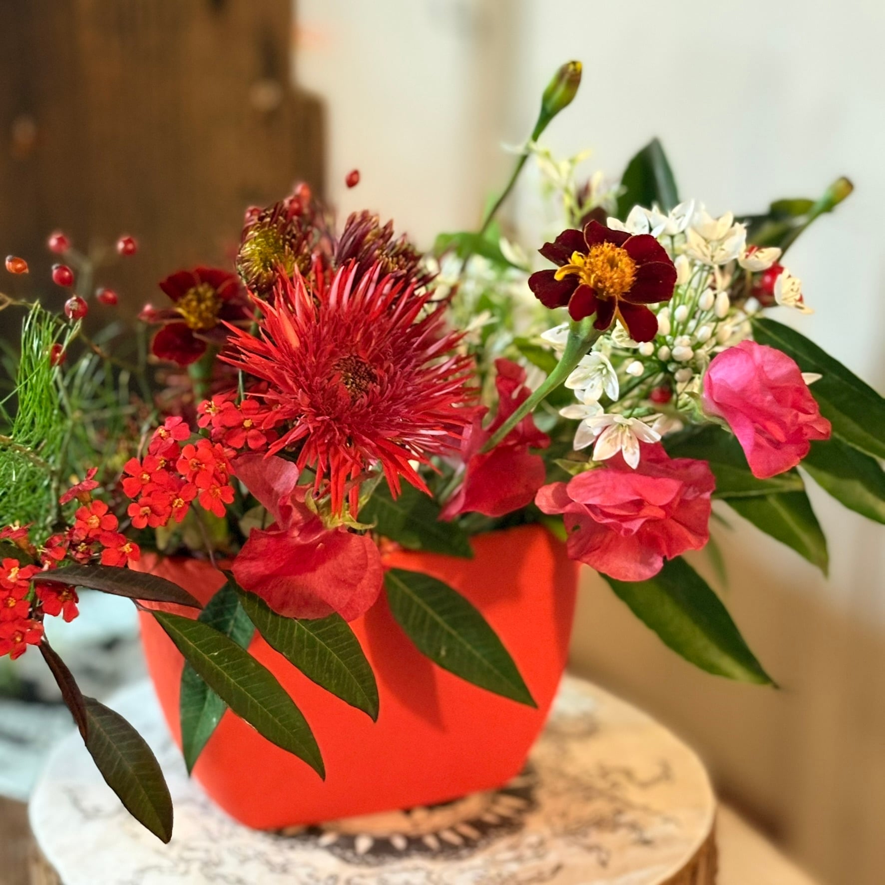 ご自宅や職場などお正月を華やかに飾る新春アレンジメントをおつくります。 <こちらのアレンジは全国一律送料でお届けします> (北海道・沖縄・離島など一部地域は除く) お届け時間:指定可能(午前中/14-16/16-18/18-20/19-21) お届け方法:ヤマト宅急便