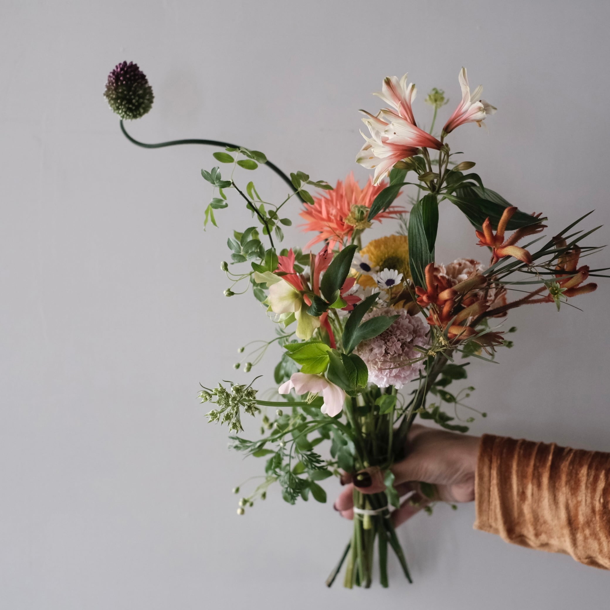 新鮮な季節のお花を使ってお部屋が華やぐ花束をお作りします。お花の雰囲気(ナチュラル、華やかなど)をオプションからお選びください。※写真のお花はボリュームの参考です ※ラッピングはイメージです ※花材のご指定はできません。